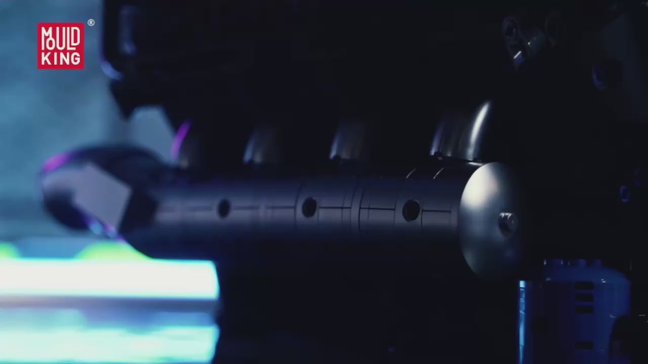En el costado del motor se puede leer claramente “V8 tank engine”, lo que deja claro que este modelo está inspirado en un motor V8 de tanque militar, no en uno de auto común. Es un motor pensado para trabajo pesado, fuerte y resistente. El diseño reproduce muy bien cómo es un motor V8 real de este tipo: tiene dos filas de cuatro cilindros en forma de V, ocho pistones en movimiento, además de culatas, válvulas, cigüeñal y árboles de levas bien detallados. Todo está hecho para que puedas ver cómo funciona la mecánica por dentro. Su apariencia es robusta e industrial, tal como los motores de uso militar. Incluye tubos y escapes grandes, tuberías reforzadas y un filtro de aire elevado, detalles que transmiten potencia y resistencia. Al frente destaca un gran ventilador de enfriamiento, típico de los motores de tanque reales, diseñado para trabajar en condiciones extremas. Gracias a su motor eléctrico, al encenderlo puedes ver cómo todo cobra vida y funciona como un auténtico motor V8 de tanque.